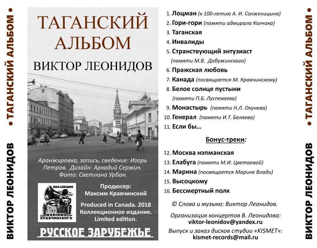 11. Виктор Леонидов, «Таганский альбом» — 2018.