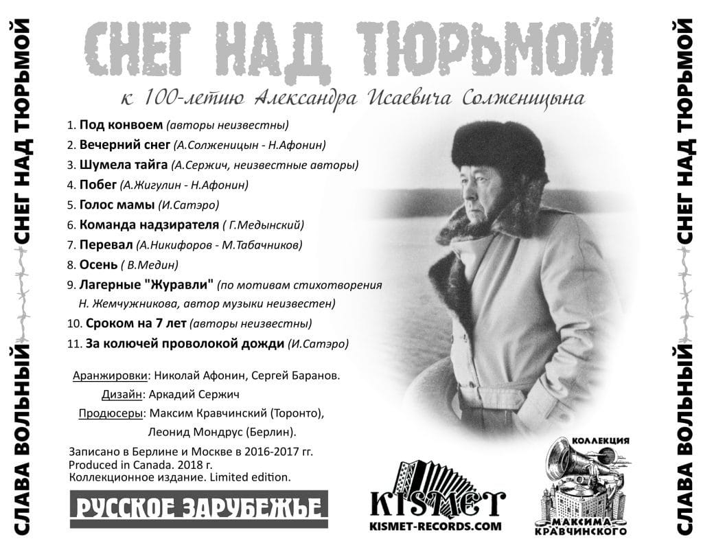 10. Слава Вольный (Германия), «Снег над тюрьмой» (к 100-летию А.И.Солженицына) — 2018.
