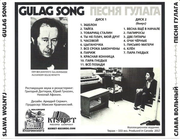 6. Слава Вольный (Германия), двойной альбом: «Песни ГУЛАГа» + неизданные гитарные записи семидесятых годов — 2017.