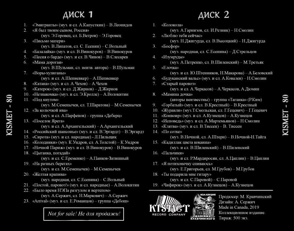 12. Юбилейный сборник к 80-летию «Кисмета» — 2 CD — 2019.