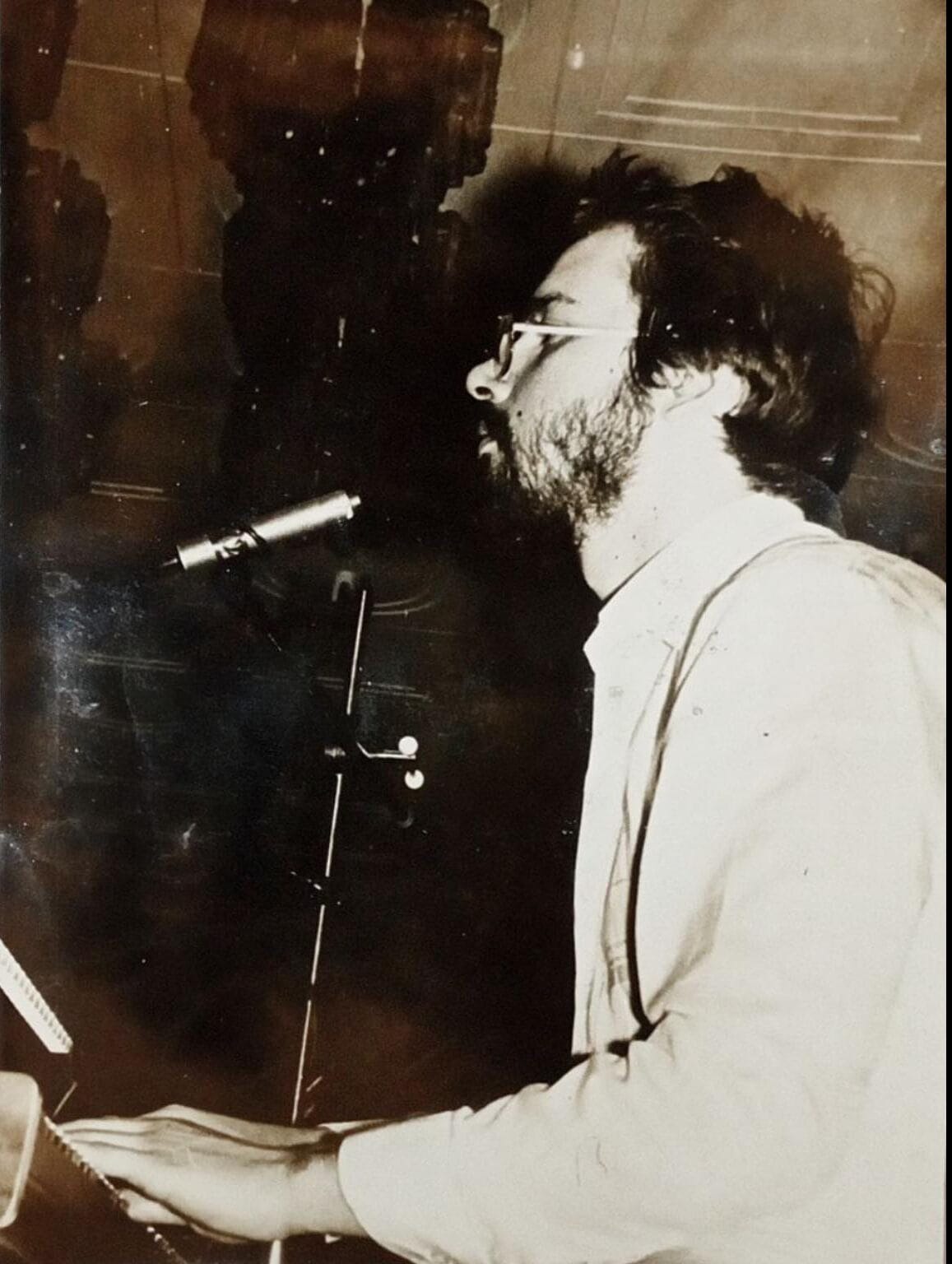 То ли кто-то мне подсказал, то ли самому пришло в голову, но я подумал вдруг, а не записать ли мне альбом, хотя бы просто так, на память? Это было уже году в девяностом, наверное. Кто-то из знакомых порекомендовал мне аранжировщика, к сожалению не помню ни фамилии его, ни даже имени, который записал все партии, только саксофониста он пригласил живого, и он же нашёл студию, где я записал уже вокал. Происходило это на какой-то киностудии, я так понимаю, неофициально, потому что приезжал я туда по ночам, встречал меня звукорежиссёр, долго вёл бесконечными пустыми коридорами в какой-то зал, где была сцена, стояла аппаратура и где мы с ним всё это и записывали. Он, кстати, со мной старательно работал, объяснял, как петь, поправлял, если нужно было, подсказывал и всячески помогал. Альбом я назвал «Маэстро», об этом я и говорю на заставке — «свой первый альбом «Маэстро» исполняет» автор.