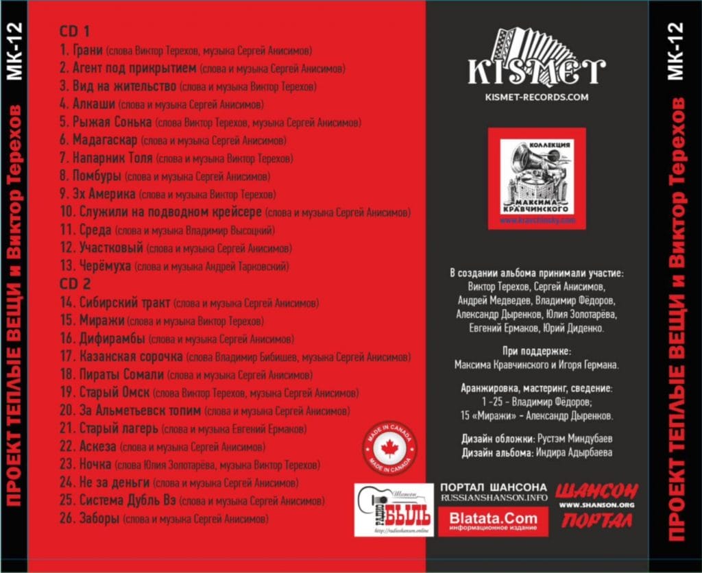 В ноябре старейшая студия русской грамзаписи зарубежом «KISMET» порадует всех поклонников жанра парочкой интересных новинок. Первая — это двойной альбом шансонье из Омска Виктора Терехова, записанный совместно с группой «Теплые вещи». Специально для моих каналов на YouTube и на RuTube Виктор записал видео с анонсом альбома и собрал клип на одну из композиций. С этим автором-исполнителем мы сотрудничаем довольно давно. За прошедшие годы под маркой «Кисмет» увидели свет уже четыре его альбома и вот так постепенном мы добрались до полу-юбилея — 5го проекта. Работа над альбомом шла долго, более 3 лет, потому что звучат тут только живые инструменты, которые записывать куда сложнее, чем «синтетику». Кроме того, концерт получился большим, почти на полтора часа звучания и потому издается на двух компактах. Песни я уже слышал и могу с уверенностью сказать, что все, кому пришлись по душе предыдущие альбомы Виктора Терехова — «Тополя», «Скок за скоком», «Магадан», «Проходят годы» — наверняка не будут разочарованы. Тут, как говорится, выстрел в «десятку». Недаром, аннотацию к диску написал не кто-нибудь, а сам легендарный маэстро шансона Игорь Герман.