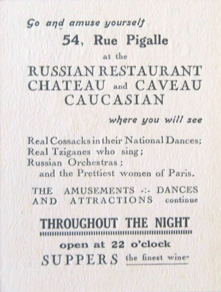 Во время недавней поездки в Европу удалось отыскать несколько интересных экспонатов, которые пополнили разные разделы коллекции. Виниловая пластинка с записью маршей Русской Императорской Армии была найдена в Париже. Она стала достойным экспонатом в разделе пластинок под условным названием «Музыкальные диверсанты». Другой «артефакт» хотя тоже связан с Францией был обнаружен в букинистическом магазине Рима. Это визитная карточка фешенебельного русского кабаре «Кавказский погребок», открытого эмигрантами первой волны в 1922 году. Визитка дополнила обширный раздел ресторанной меморабилии. За последние годы мне удалось собрать весьма приличную коллекцию открыток, меню, винных карт и прочих предметом, связанных с русскими кабаре заграницей. На сайте представлена лишь малая часть, потому что в будущем я планирую выпустить расширенное переиздание книги «Русская песня в изгнании», где подробно расскажу не только об артистах, но и об истории мест, где им приходилось выступать. Не секрет, что многие заведения в 1920-30-е годы были оформлены известными художниками, а метрдотелями или музыкантами там нередко служили представители именитых родов. Надеюсь, в обозримом будущем удастся приступить к работе. А пока готовлю серию премьер на русском ТВ в Канаде, о чем подробнее обязательно расскажу вам ровно через неделю.