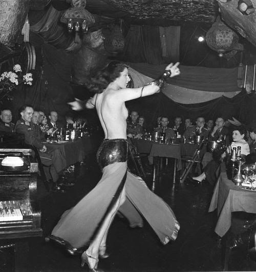 В модное место стремились попасть аристократы и нефтяные магнаты, промышленники и кинозвезды, богатые туристы и любопытствующие обыватели. «Шахерезада» была любимым заведением дочери писателя Куприна, красавицы-манекенщицы Ксении. Здесь, под песни Наташи Кедровой, она провела свой последний вечер перед возвращением в Советский Союз. Не упускала возможности заглянуть на «огонек» и Марлен Дитрих. Нередко дива приводила туда своих друзей, желая «поразить широтою размаха». Здесь проводил вечера писатель Эрих Мария Ремарк, наслаждавшийся пением цыганки Зины Павловой и виртуозной игрой оркестра. Кстати Ремарк посвятил «Шехерезаде» целую главу в романе «Триумфальная арка», фрагмент из которой я процитировал в начале моего рассказа. Согласно воспоминаниям Ильи Шнайдера, в «Шехерезаде» перед отъездом из Парижа в СССР ужинал Сергей Есенин. Делая заказ, он повздорил с метрдотелем – бывшим белогвардейским офицером. Скандал с трудом удалось замять. Однако здесь мемуарист ошибается, потому как в 1922 году, когда поэт совершал свой заграничный вояж, «Шехерезады» еще не существовало. А инцидент, если и случился, то, скорее всего, в «Кавказском погребке», действительно, открытом как раз в 1922 году.